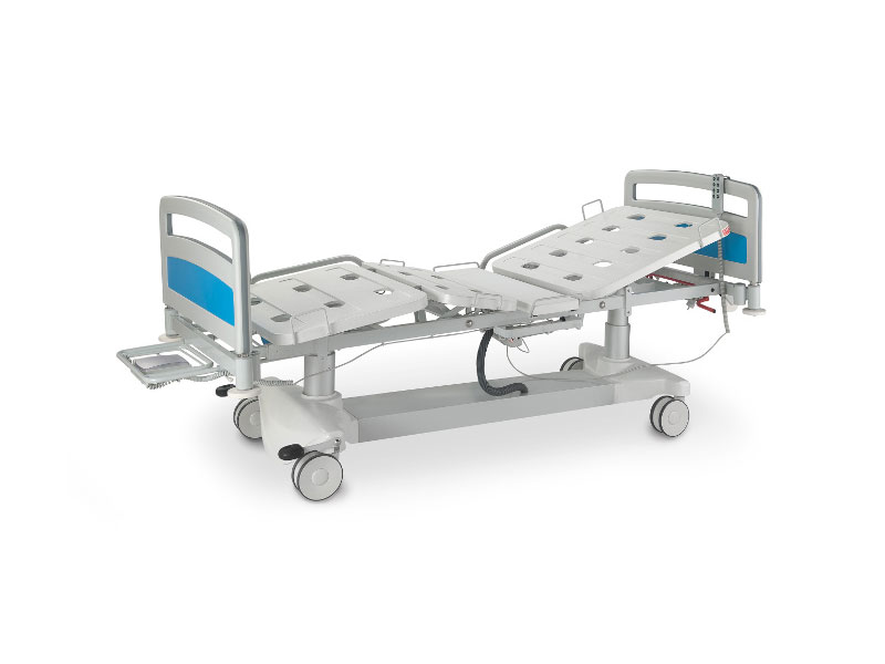 Cama articulada manual simples, com grades laterais de protecção em metal.