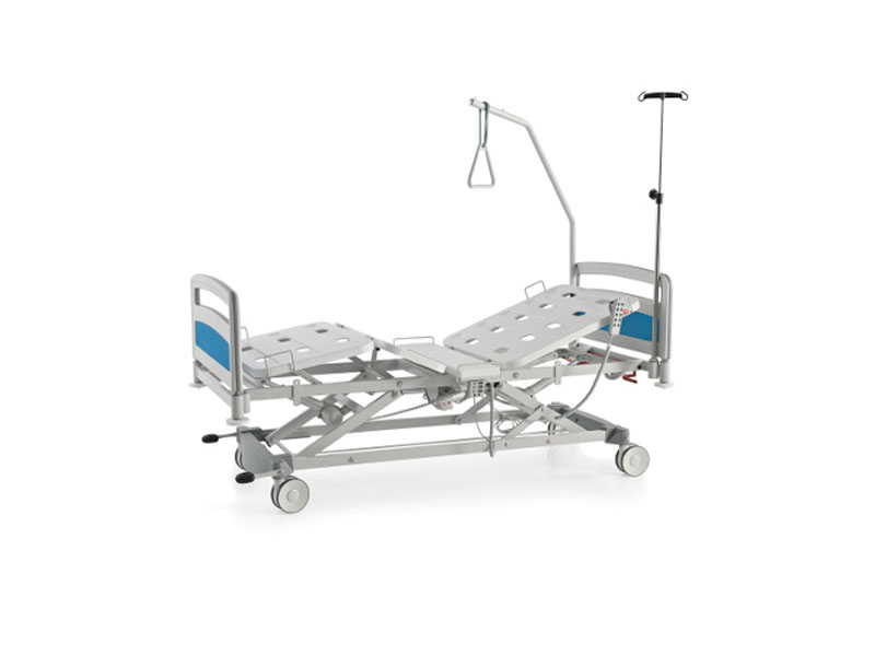 Cama articulada manual simples, com grades laterais de protecção em metal.